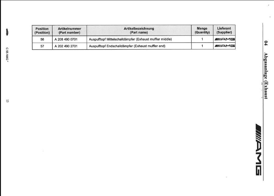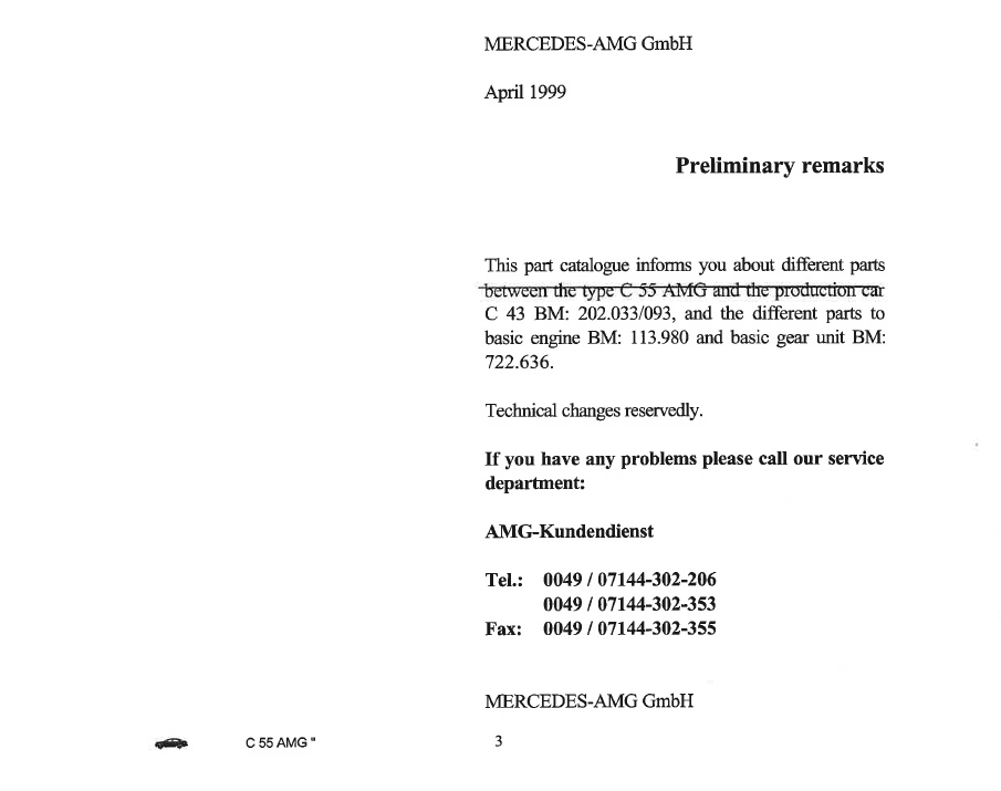Einen Teil der Modifikationen habe ich in offiziellen AMG Dokumenten gefunden. Entgegen mancher Behauptungen, befindet sich kein Avantgarde Kühlergrill in der Ersatzteilliste oder in den C 55 Pressefotos. Alyehli hat ebenfalls einige Dokumente im Internet bereitgestellt.