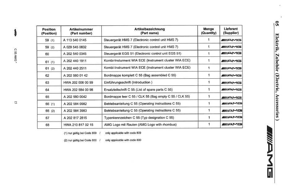 Unterscheidungsmerkmale C 55 AMG (Datenkarte)