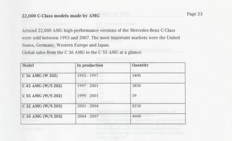 Die 59 sehe ich jedoch als inkorrekt an, da die anderen Zahlen z.B. 5400 C36 AMGs nicht stimmen. Mercedes widerspricht sich da selbst mit der Stückzahl 5221 aus dem Archiv: